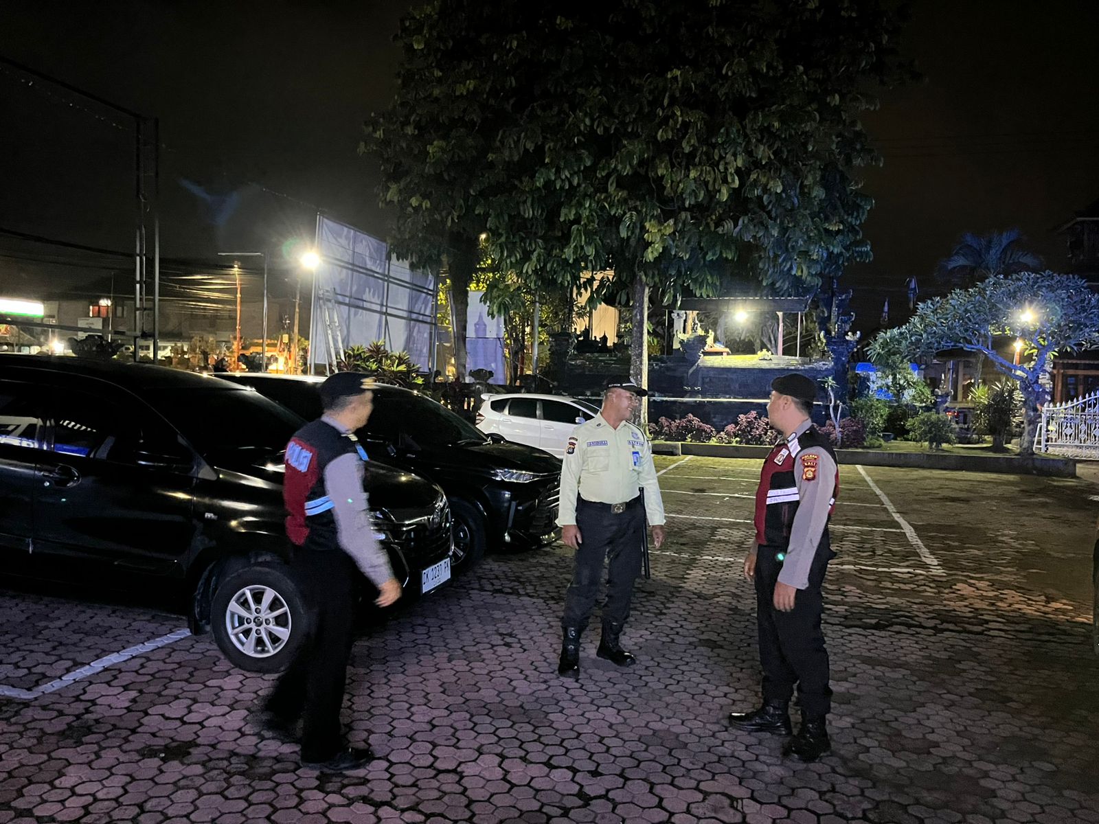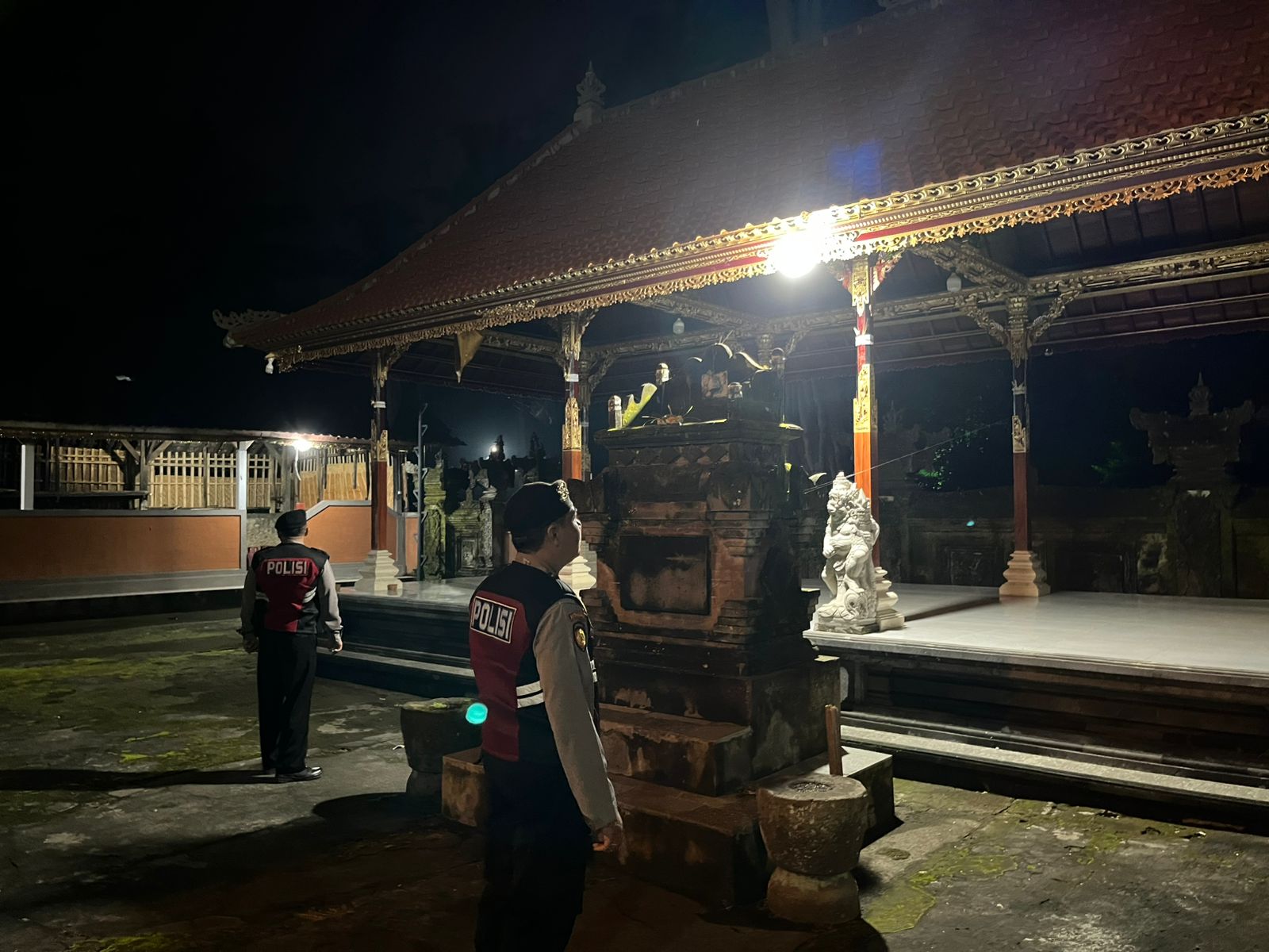 Menjaga Situasi Tetap Kondusif Pada Malam Hari, Sat Samapta Polres Bangli Sambangi Tempat Suci Pura Penataran Agung