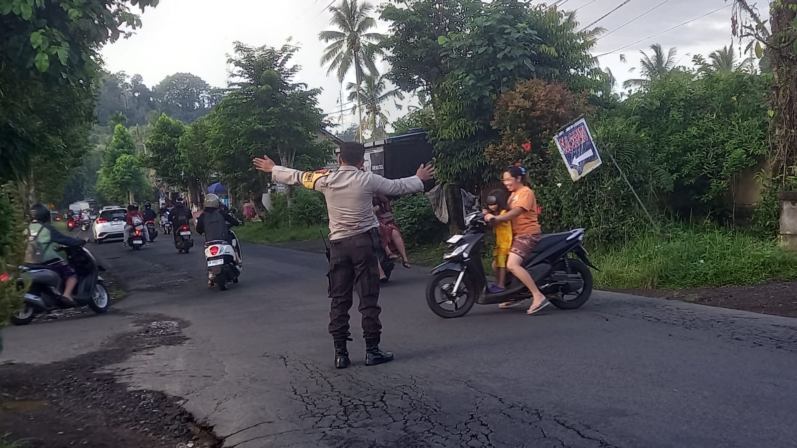 Personil Polsek Bangli Laksanakan Pengaturan Arus Lalulintas, Antisipasi Kegiatan Masyarakat di Pagi Hari