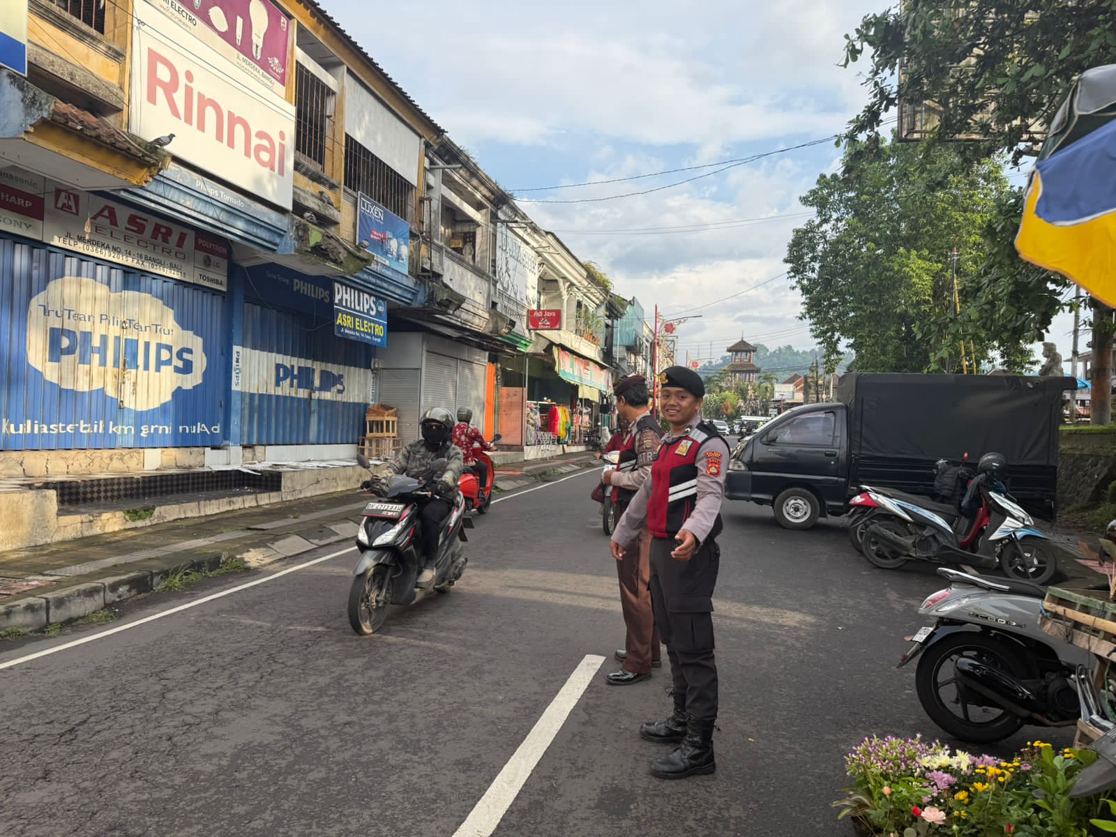 PERKECIL RUANG GERAK AKSI CURANMOR DIWILKUM BANGLI PERSONIL SAMAPTA POLRES BANGLI SAMBANGI TUKANG PARKIR