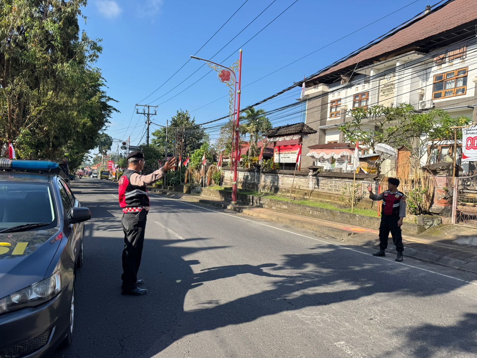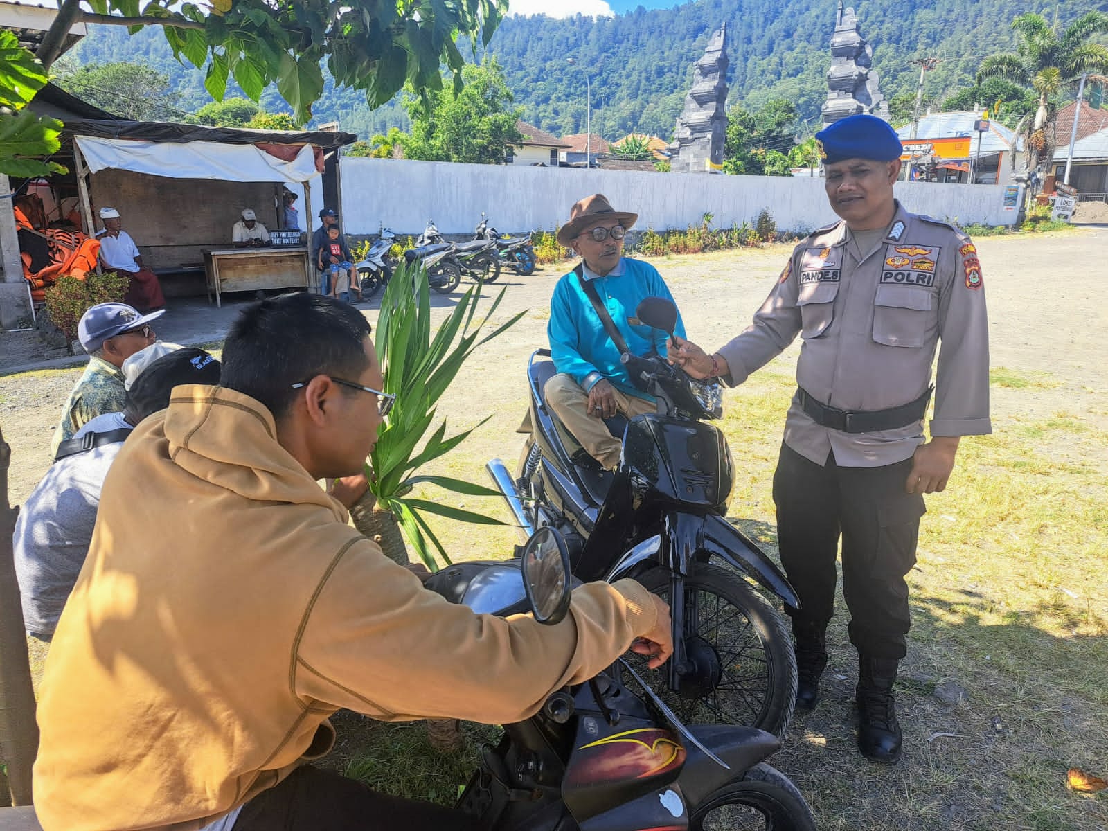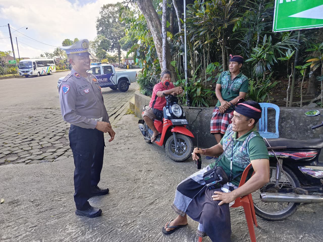 Polres Bangli Bersama Pam Swakarsa Pecalang Desa Adat Penglipuran Gelar Giat Pengaturan Lalu Lintas