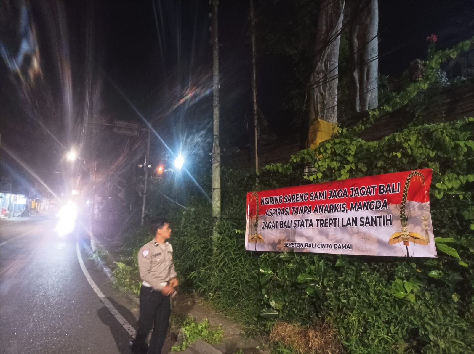 Satlantas Polres Bangli Pasang Spanduk Himbauan Jaga Kamtibmas