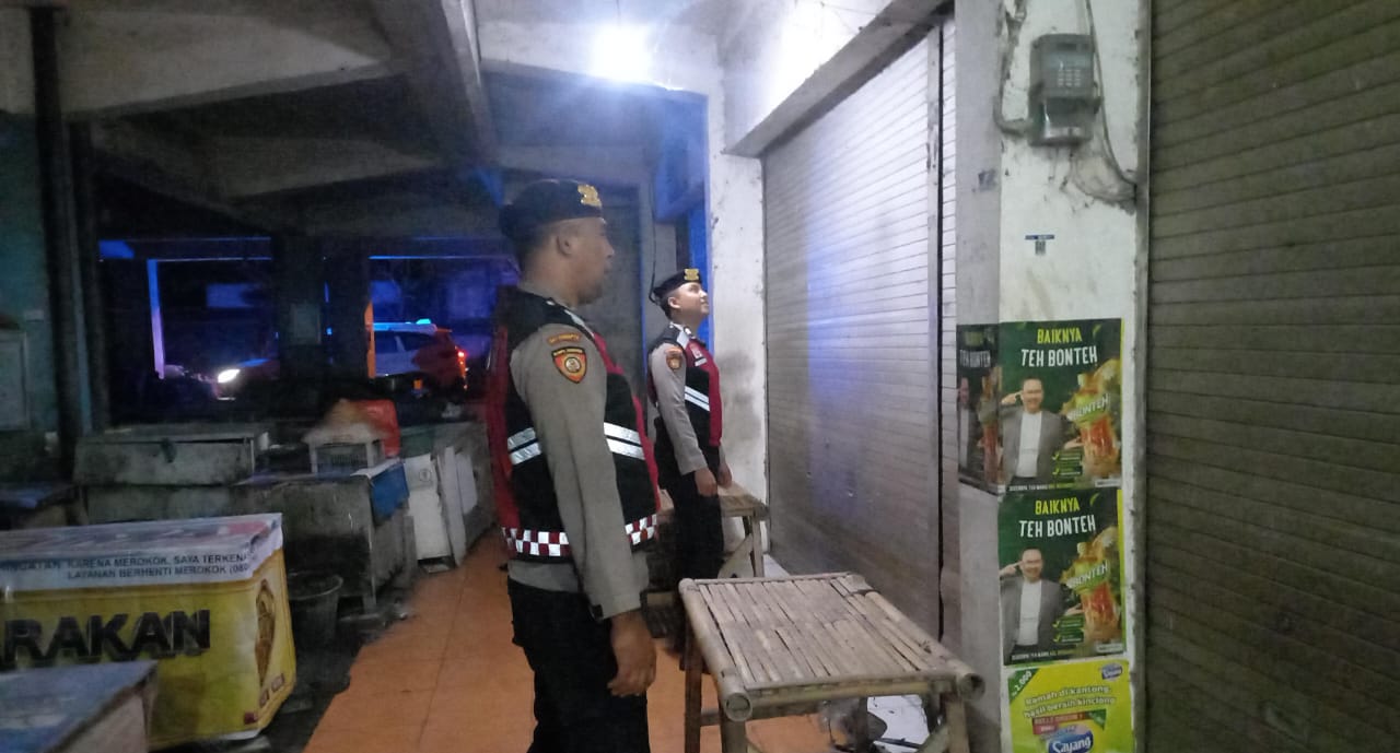 Antisipasi Gangguan Kamtibmas Pada Malam Hari, Personil Samapta Polres Bangli Lakukan Patroli Malam di Areal Pertokoan Pasar Kidul Bangli.