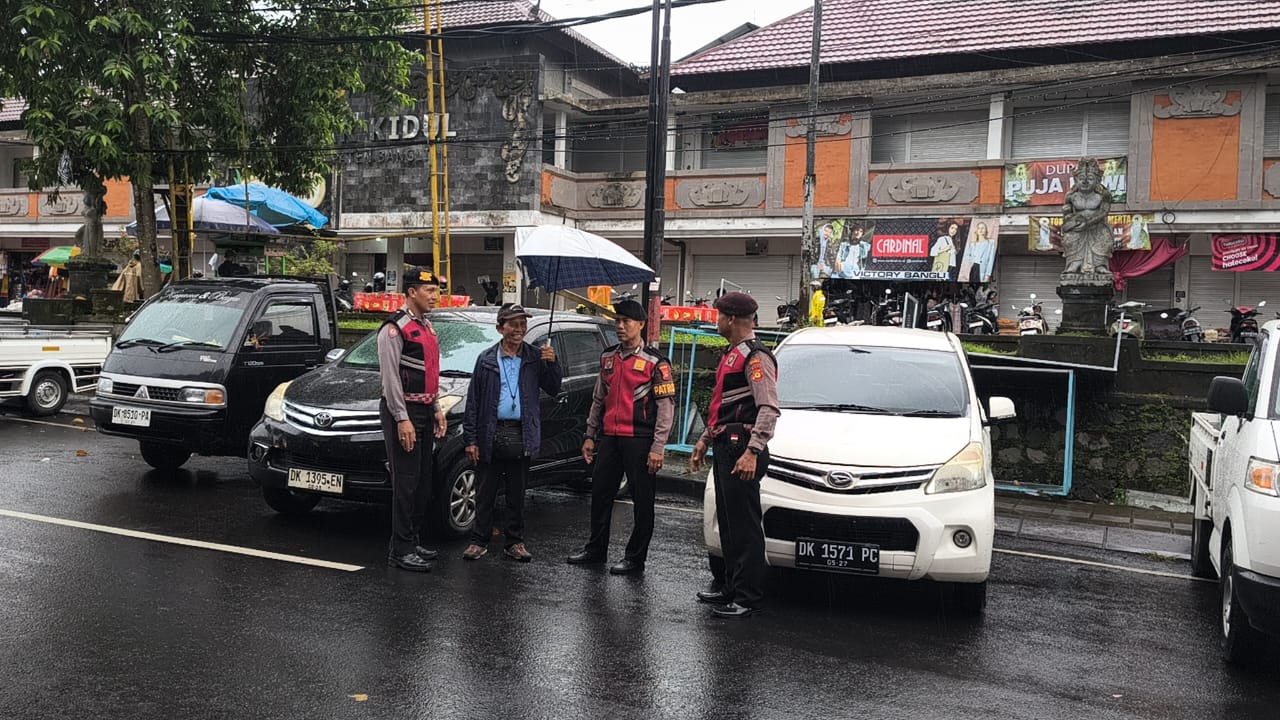 PERKECIL RUANG GERAK AKSI CURANMOR DIWILKUM BANGLI PERSONIL SAMAPTA POLRES BANGLI SAMBANGI TUKANG PARKIR