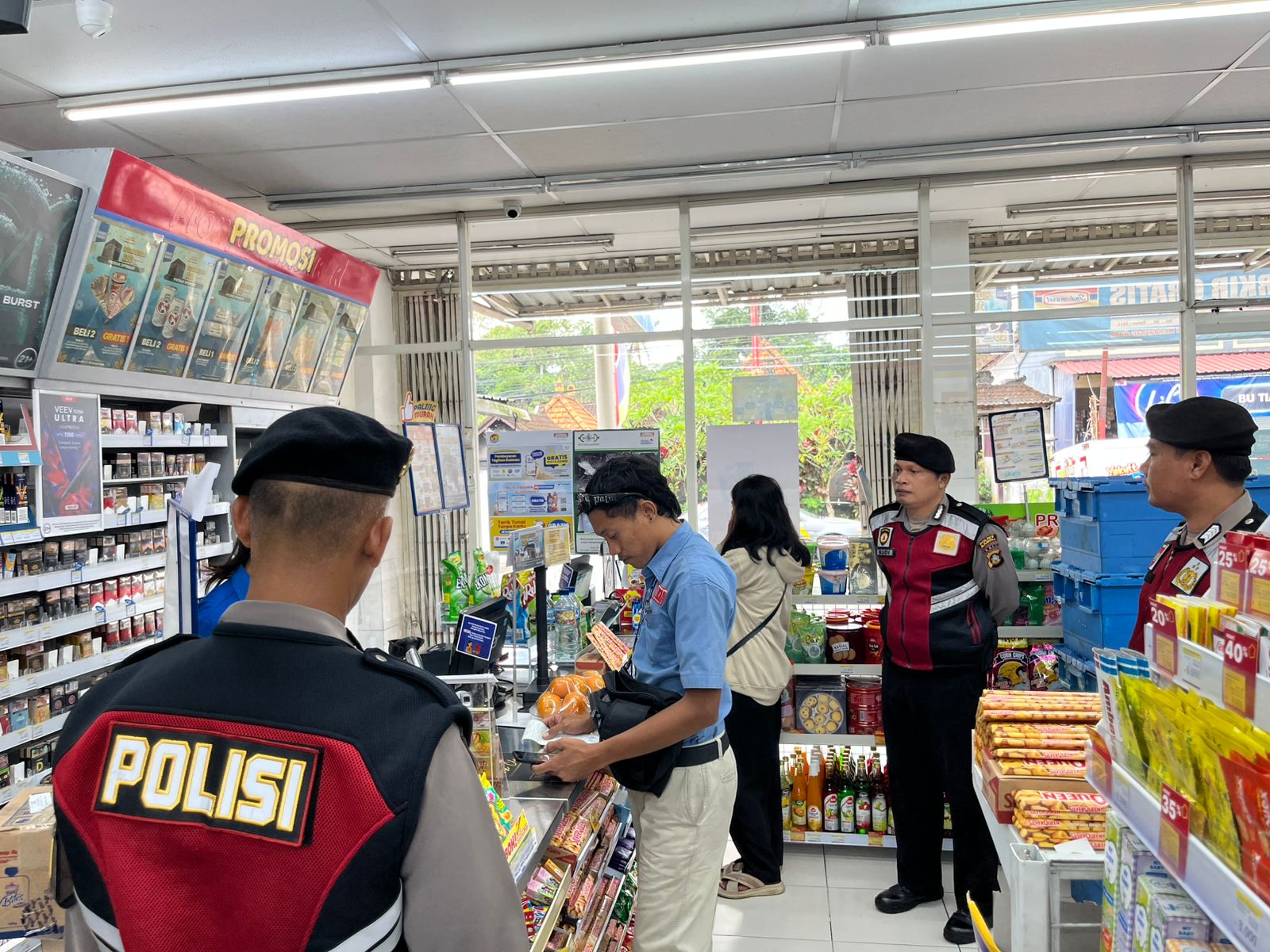 Sat Samapta Polres Bangli Secara Rutin Laksanakan Patroli Dialogis Tentang Kamtibmas Kepada Karyawan Pertokoan Modern di wilkum Polres Bangli