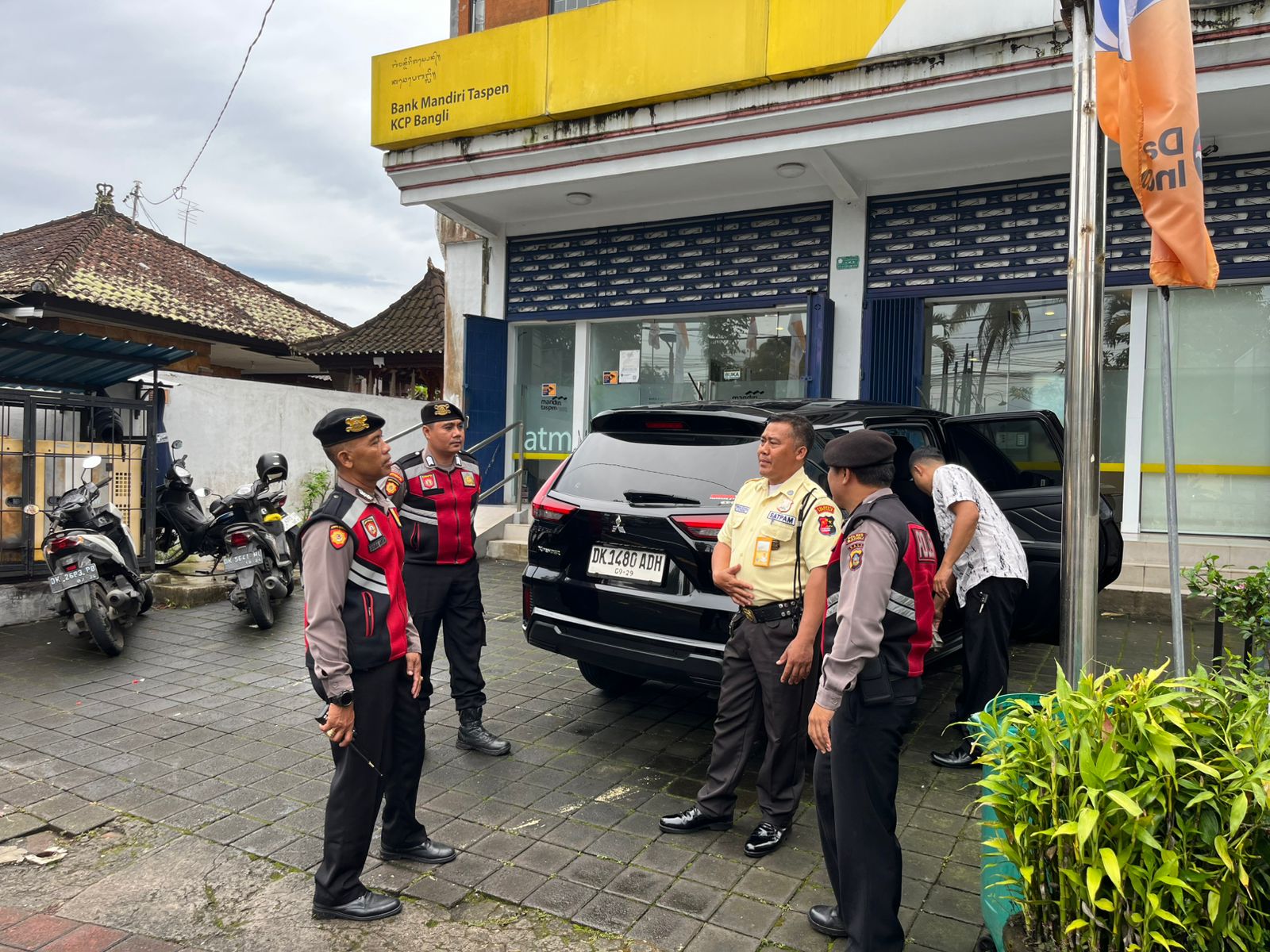 Sat Samapta Res Bangli Laksanakan Patroli Dialogis Dan Himbauan Kamtibmas Kepada Satpam Obyek Vital Bank Mandiri Cabang Bangli.