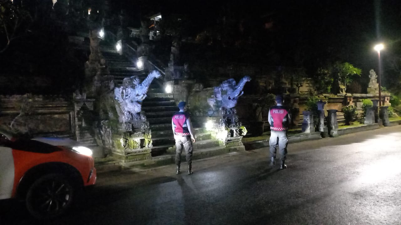Menjaga Situasi Tetap Kondusi Pada Malam Hari, Sat Samapta Polres Bangli Sambangi Tempat Suci Pura Kehen, Kel. Cempaga, Kec. Bangli