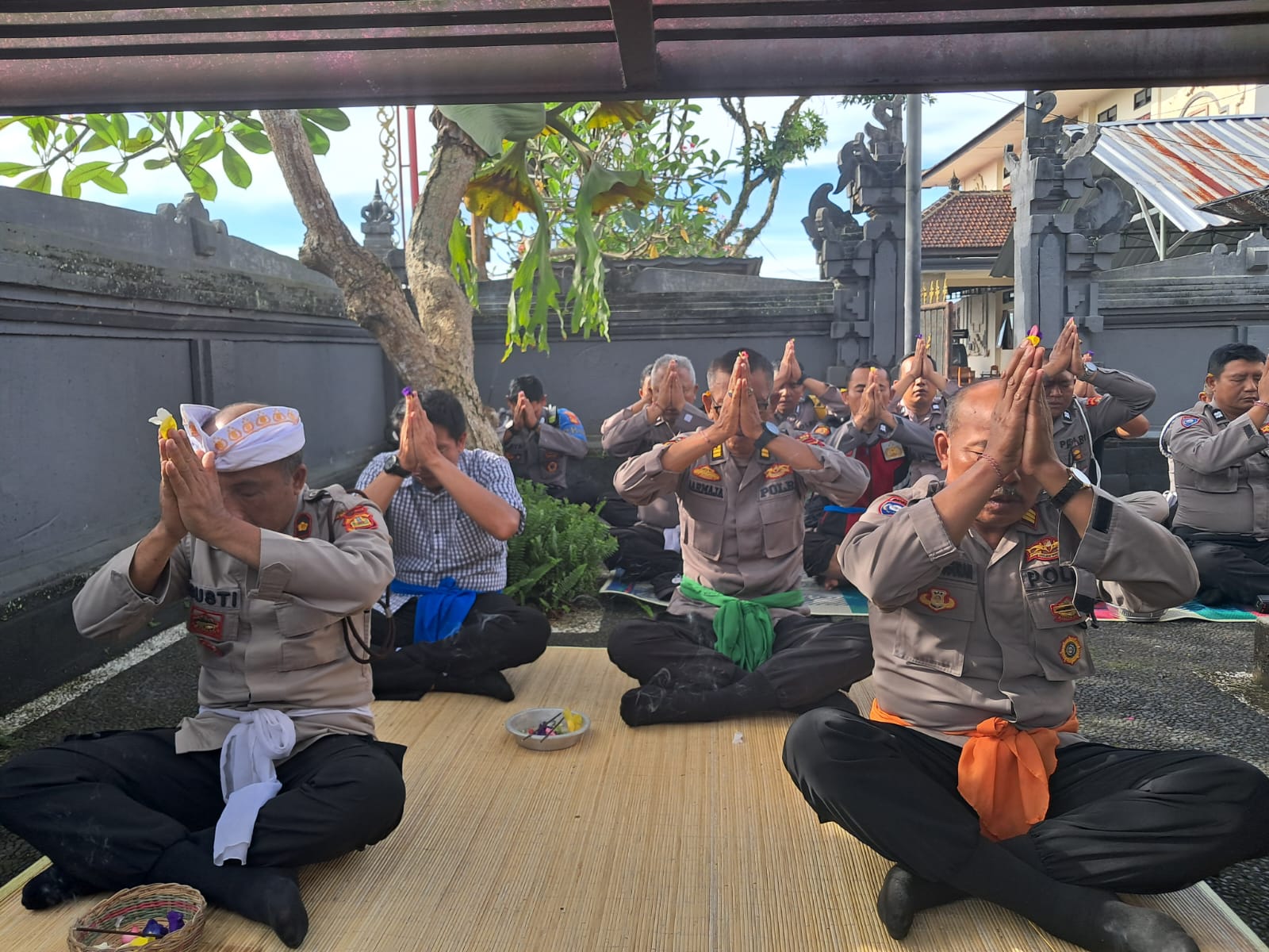 Kapolsek Bersama Anggota Laksanakan Persembahyangan di Padmasana Polsek Bangli