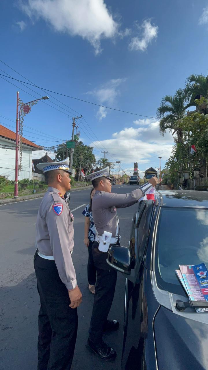 Sat Lantas Polres Bangli Bagikan Bendera Merah Putih dalam Rangka Menyambut HUT RI ke-80