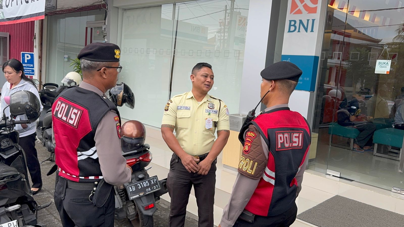 Sat Samapta Res Bangli Laksanakan Patroli Dialogis Dan Himbauan Kamtibmas Kepada Satpam Obyek Vital Bank BNI Cabang Bangli.