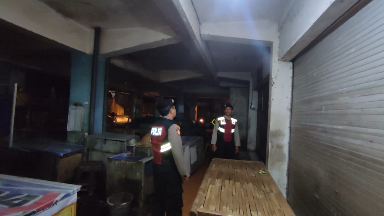Antisipasi Gangguan Kamtibmas Pada Malam Hari, Personil Samapta Polres Bangli Lakukan Patroli Malam di Areal Pertokoan Pasar Kidul Bangli.