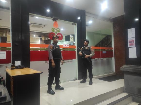 Sat Samapta Res Bangli Laksanakan Patroli Dialogis Dan Himbauan Kamtibmas Kepada Satpam Obyek Vital Bank Daerah Bangli.
