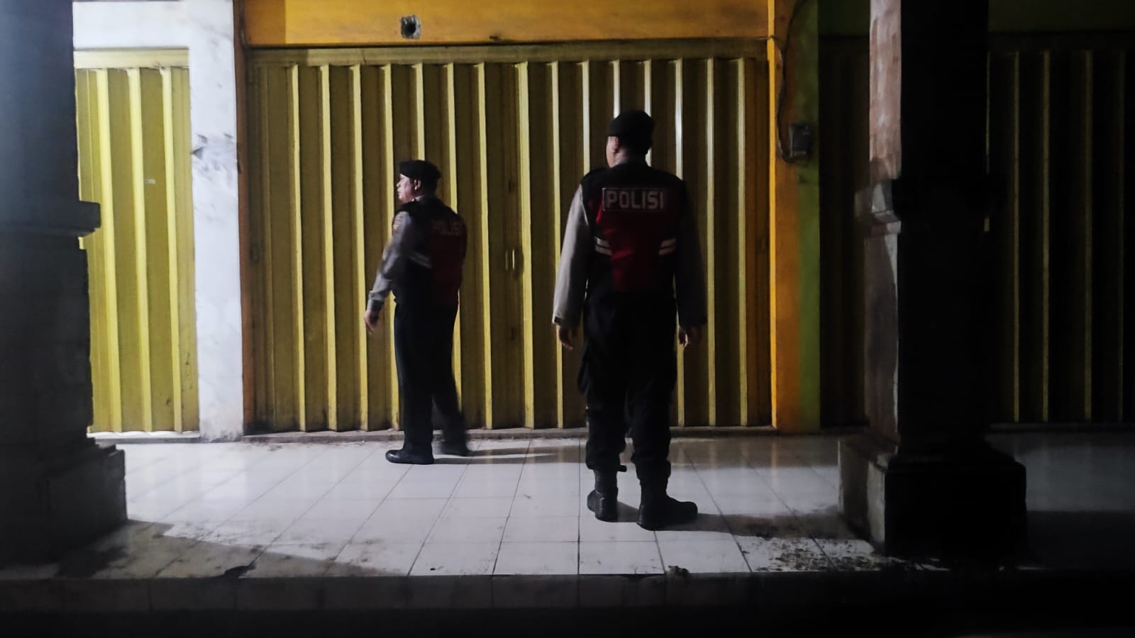 Antisipasi Gangguan Kamtibmas Pada Malam Hari, Personil Samapta Polres Bangli Lakukan Patroli Malam di Areal Pertokoan Pasar Kidul Bangli.