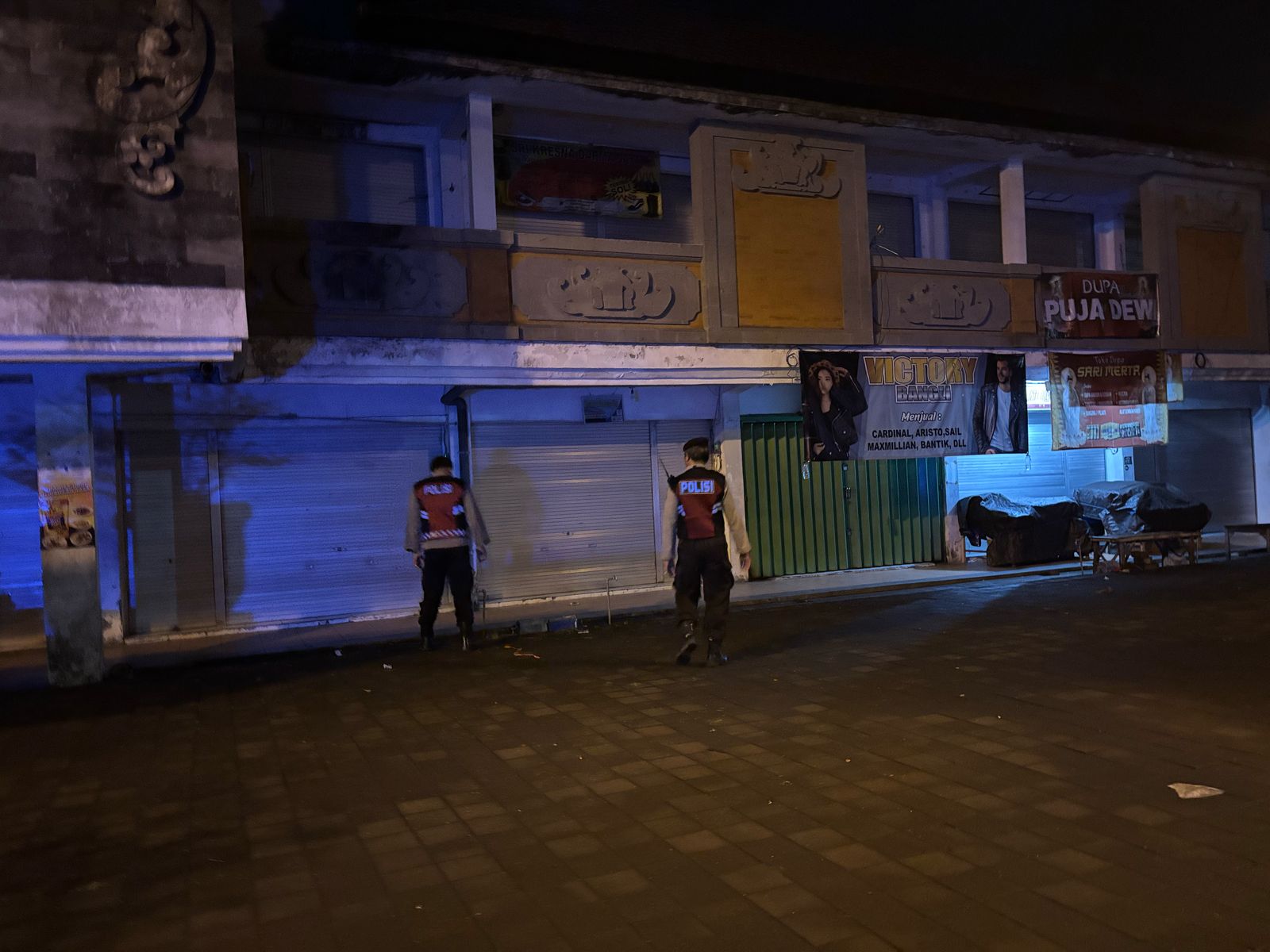 Antisipasi Gangguan Kamtibmas Pada Malam Hari, Personil Samapta Polres Bangli Lakukan Patroli Malam di Areal Pertokoan Pasar Kidul Bangli.