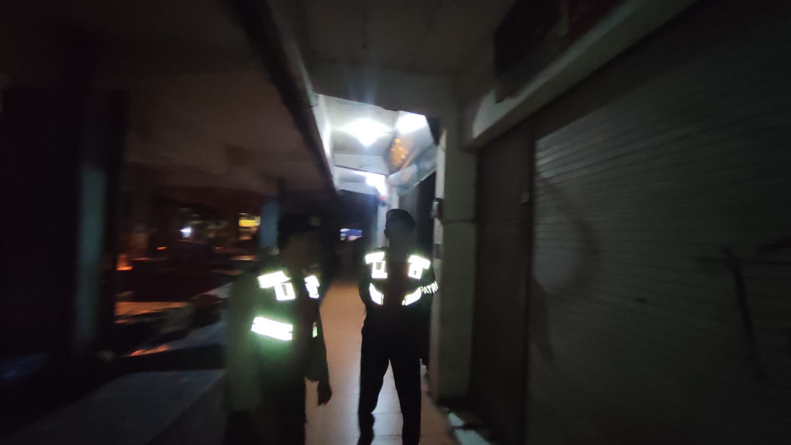 Antisipasi Gangguan Kamtibmas Pada Malam Hari, Personil Samapta Polres Bangli Lakukan Patroli Malam di Areal Pertokoan Pasar Kidul Bangli.