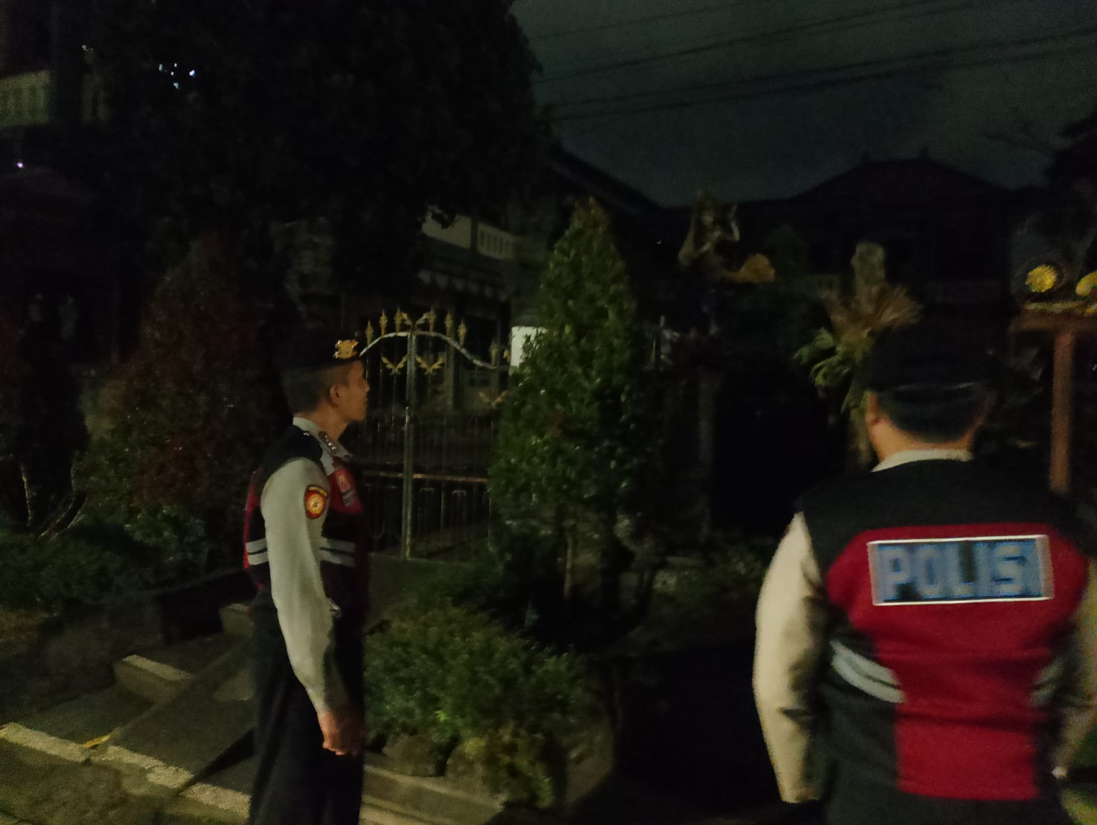 Sat Samapta Melaksanakan Patroli Dialogis Memberikan Himbauan Kamtibmas Kepada Krama Pekemitan Di Pura Dalem Penunggekan, Bangli.