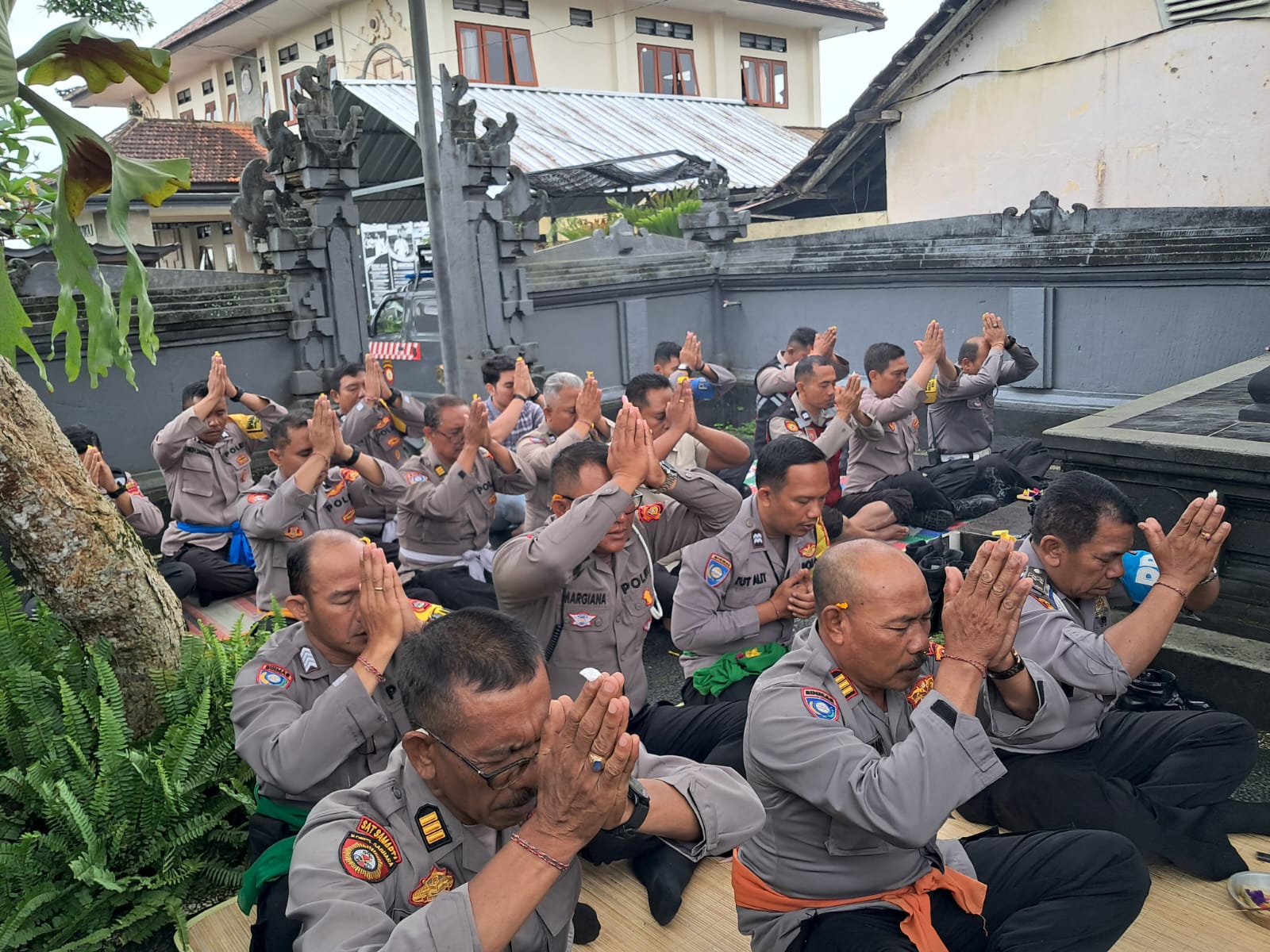 Personil Polsek Laksanakan Persembahyangan Bersama Di Padmasana Polsek Bangli