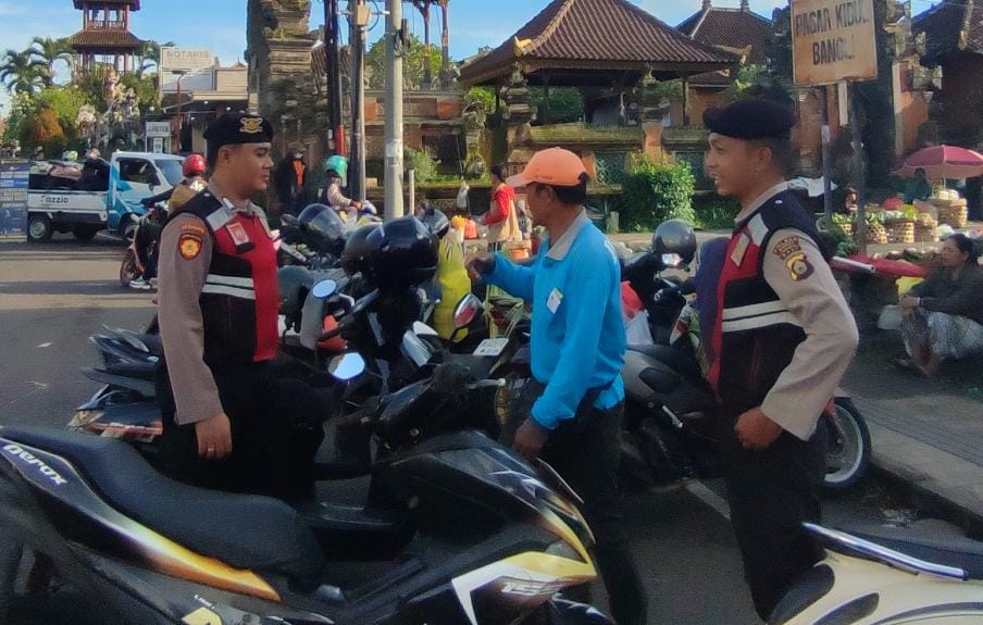 PERKECIL RUANG GERAK AKSI CURANMOR DIWILKUM BANGLI PERSONIL SAMAPTA POLRES BANGLI SAMBANGI TUKANG PARKIR