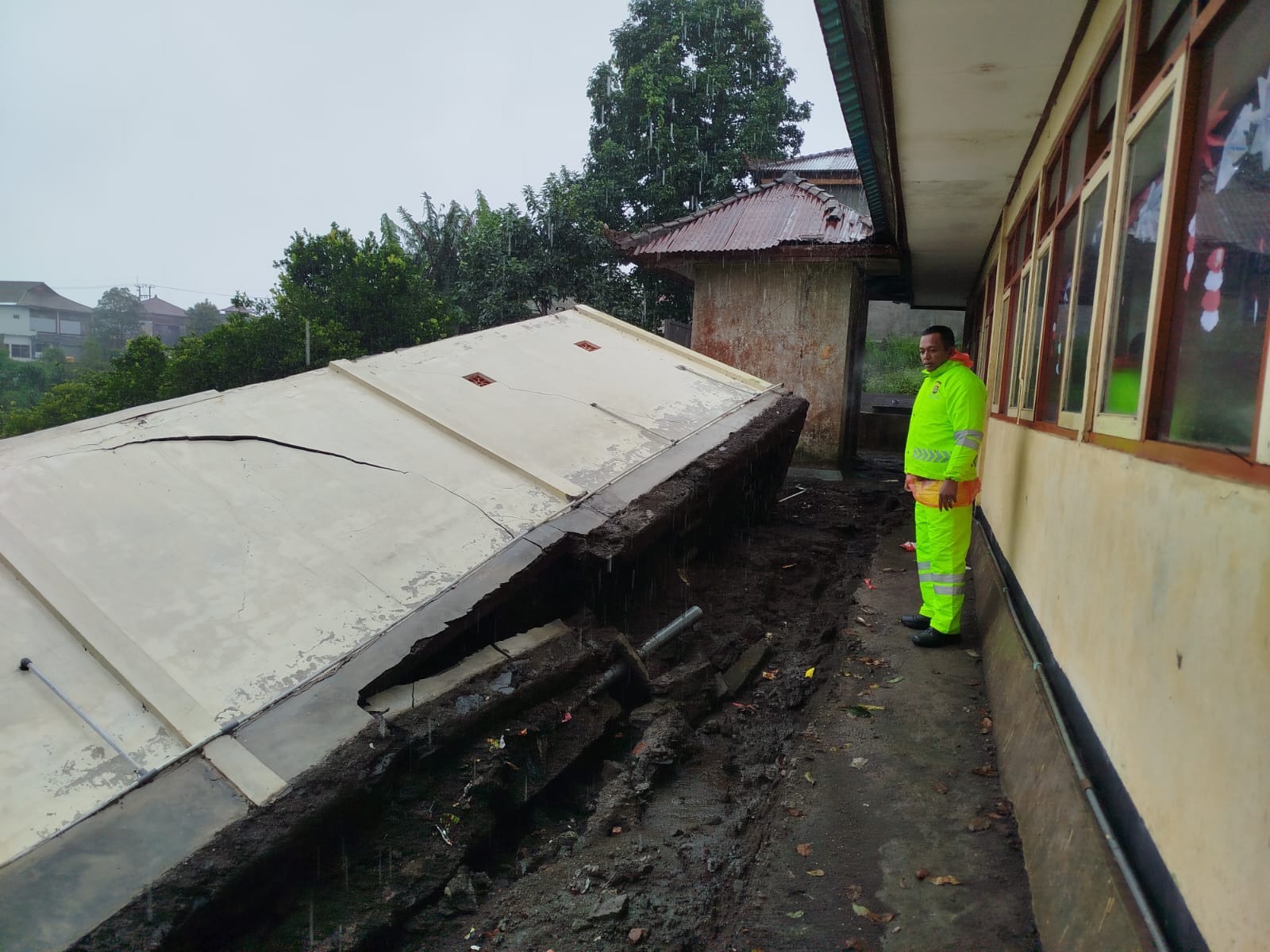 Hujan Deras Sebabkan Bangunan Toilet SDN 2 Batur Tergerus Longsor, Polisi ImbaubTetap Waspada