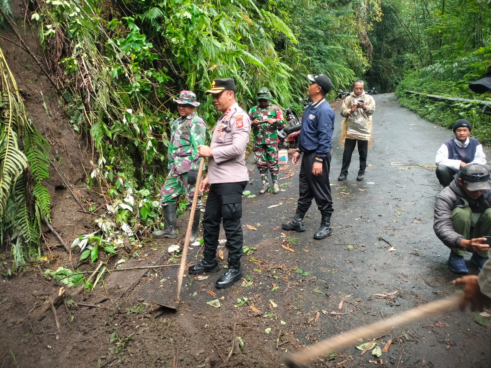 Kapolsek Kintamani Hadiri Karya Bakti Pembersihan Material Longsor di Banjar Wanagir