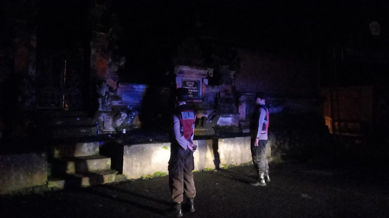 Menjaga Situasi Tetap Kondusi Pada Malam Hari, Sat Samapta Polres Bangli Sambangi Tempat Suci Pura Penataran Er Malet, Kel. Kawan, Kec. Bangli