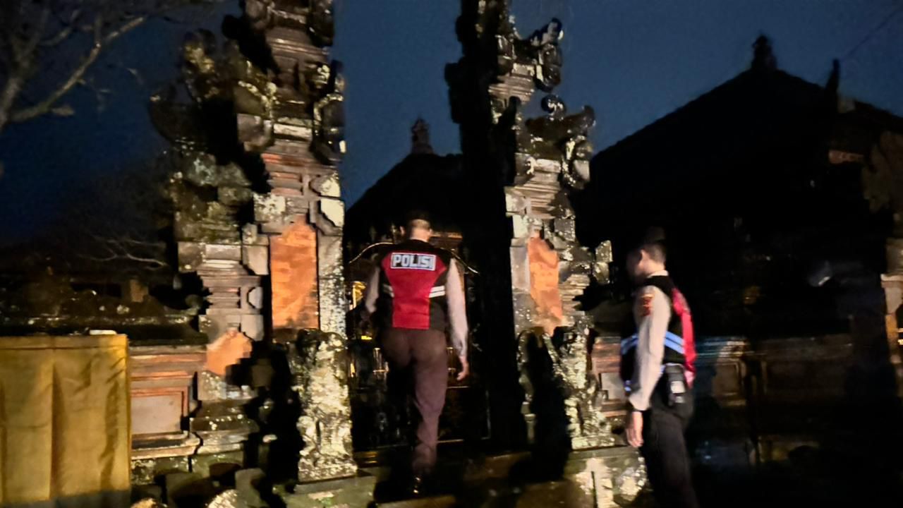 Menjaga Situasi Tetap Kondusi Pada Malam Hari, Sat Samapta Polres Bangli Sambangi Tempat Suci Pura Penataran Er Malet, Kel. Kawan, Kec. Bangli