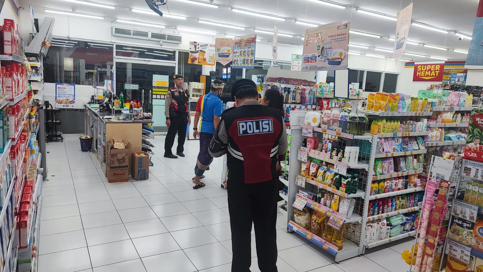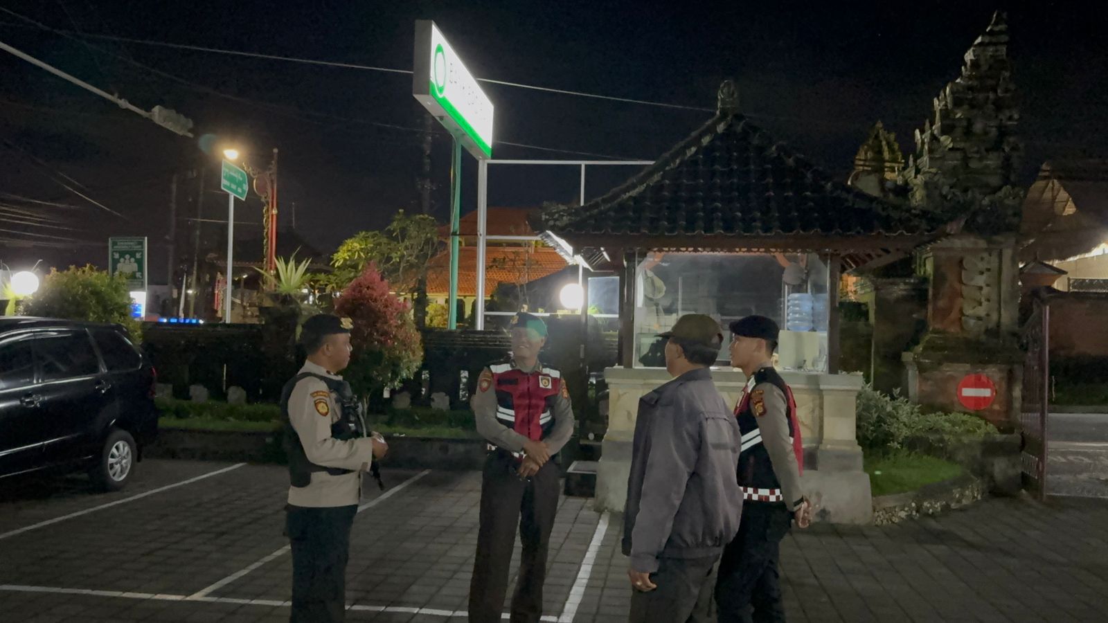 Antisipasi Gangguan Kamtibmas Pada Malam Hari, Personil Samapta Polres Bangli Lakukan Patroli Malam di Areal Pertokoan Pasar Kidul Bangli.