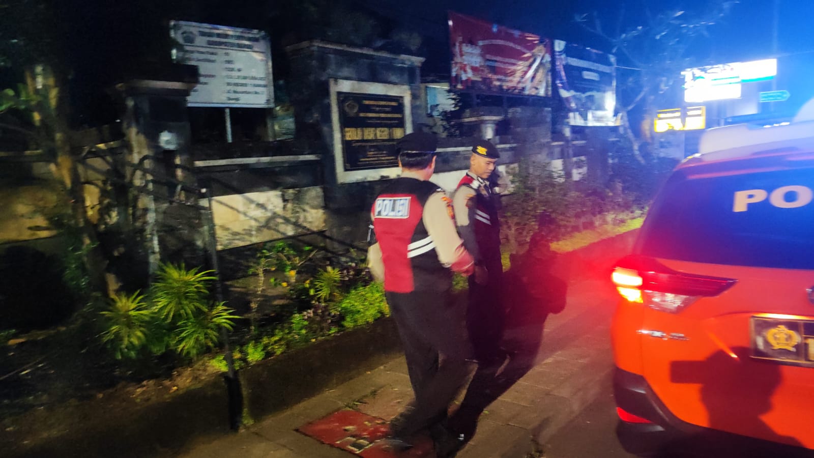 Satuan Samapta Polres Bangli Laksanakan Patroli Pada Malam Hari di SMK N 1 Bangli, Kel. Kawan, Kec. Bangli, Untuk Antisipasi Gangguan Kamtibmas.