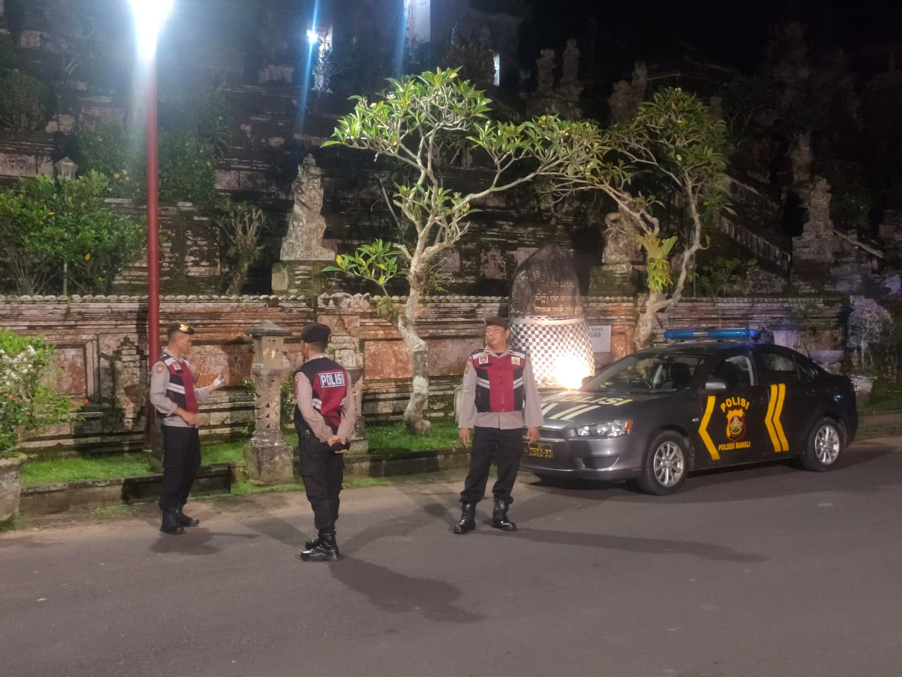 Menjaga Situasi Tetap Kondusi Pada Malam Hari,Sat Samapta Polres Bangli Sambangi Tempat Suci Pura Penataran Er Malet ,Br Pule, Bangli